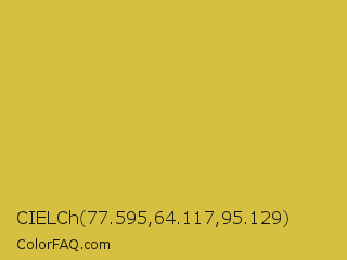 CIELCh 77.595,64.117,95.129 Color is a normal yellow color and the nearest color is Anzac #e0b646. Hex code #d7c041 and RGB value is rgb(215,192,65). In RGB color space, this color is composed of 84% red, 75% green, 25% blue, In CMYK color space, this color is composed of 0% cyan, 11% magenta, 70% yellow , 16% black , In HSL color space, this color has a hue angle of 51° , 65% saturation and 55% lightness.