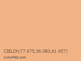 CIELCh 77.675,36.083,61.657 Color is a light orange color and the nearest color is Tacao #edb381. Hex code #f1b386 and RGB value is rgb(241,179,134). In RGB color space, this color is composed of 95% red, 70% green, 53% blue, In CMYK color space, this color is composed of 0% cyan, 26% magenta, 44% yellow , 5% black , In HSL color space, this color has a hue angle of 25° , 79% saturation and 74% lightness.