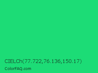CIELCh 77.722,76.136,150.17 Color is a normal green color and the nearest color is UFO Green #3cd070. Hex code #1cdc76 and RGB value is rgb(28,220,118). In RGB color space, this color is composed of 11% red, 86% green, 46% blue, In CMYK color space, this color is composed of 87% cyan, 0% magenta, 46% yellow , 14% black , In HSL color space, this color has a hue angle of 148° , 77% saturation and 49% lightness.