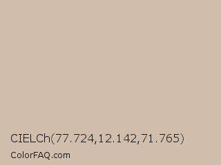 CIELCh 77.724,12.142,71.765 Color is a light orange color and the nearest color is Vanilla #d1bea8. Hex code #d0bdab and RGB value is rgb(208,189,171). In RGB color space, this color is composed of 82% red, 74% green, 67% blue, In CMYK color space, this color is composed of 0% cyan, 9% magenta, 18% yellow , 18% black , In HSL color space, this color has a hue angle of 29° , 28% saturation and 74% lightness.