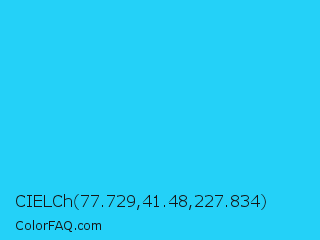 CIELCh 77.729,41.48,227.834 Color is a normal cyan color and the nearest color is Spiro Disco Ball #0fc0fc. Hex code #24d1f8 and RGB value is rgb(36,209,248). In RGB color space, this color is composed of 14% red, 82% green, 97% blue, In CMYK color space, this color is composed of 85% cyan, 16% magenta, 0% yellow , 3% black , In HSL color space, this color has a hue angle of 191° , 94% saturation and 56% lightness.