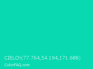 CIELCh 77.764,54.194,171.688 Color is a normal cyan color and the nearest color is Amazonite #00c4b0. Hex code #08d9b0 and RGB value is rgb(8,217,176). In RGB color space, this color is composed of 3% red, 85% green, 69% blue, In CMYK color space, this color is composed of 96% cyan, 0% magenta, 19% yellow , 15% black , In HSL color space, this color has a hue angle of 168° , 93% saturation and 44% lightness.