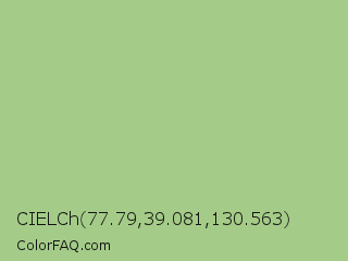 CIELCh 77.79,39.081,130.563 Color is a light green color and the nearest color is Feijoa #9fdd8c. Hex code #a4cc88 and RGB value is rgb(164,204,136). In RGB color space, this color is composed of 64% red, 80% green, 53% blue, In CMYK color space, this color is composed of 20% cyan, 0% magenta, 33% yellow , 20% black , In HSL color space, this color has a hue angle of 95° , 40% saturation and 67% lightness.