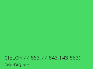 CIELCh 77.853,77.843,143.863 Color is a normal green color and the nearest color is UFO Green #3cd070. Hex code #47db66 and RGB value is rgb(71,219,102). In RGB color space, this color is composed of 28% red, 86% green, 40% blue, In CMYK color space, this color is composed of 68% cyan, 0% magenta, 53% yellow , 14% black , In HSL color space, this color has a hue angle of 133° , 67% saturation and 57% lightness.