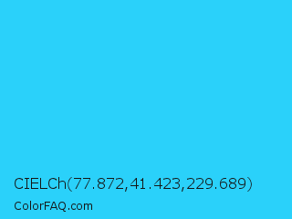 CIELCh 77.872,41.423,229.689 Color is a normal cyan color and the nearest color is Spiro Disco Ball #0fc0fc. Hex code #2ad1fa and RGB value is rgb(42,209,250). In RGB color space, this color is composed of 16% red, 82% green, 98% blue, In CMYK color space, this color is composed of 83% cyan, 16% magenta, 0% yellow , 2% black , In HSL color space, this color has a hue angle of 192° , 95% saturation and 57% lightness.