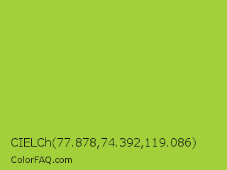 CIELCh 77.878,74.392,119.086 Color is a normal lime color and the nearest color is Android Green #a4c639. Hex code #a1d03b and RGB value is rgb(161,208,59). In RGB color space, this color is composed of 63% red, 82% green, 23% blue, In CMYK color space, this color is composed of 23% cyan, 0% magenta, 72% yellow , 18% black , In HSL color space, this color has a hue angle of 79° , 61% saturation and 52% lightness.