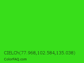 CIELCh 77.968,102.584,135.038 Color is a normal green color and the nearest color is Harlequin Green #46cb18. Hex code #38de1a and RGB value is rgb(56,222,26). In RGB color space, this color is composed of 22% red, 87% green, 10% blue, In CMYK color space, this color is composed of 75% cyan, 0% magenta, 88% yellow , 13% black , In HSL color space, this color has a hue angle of 111° , 79% saturation and 49% lightness.