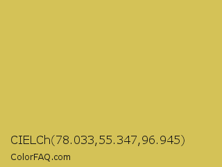CIELCh 78.033,55.347,96.945 Color is a normal yellow color and the nearest color is Tacha #d6c562. Hex code #d4c257 and RGB value is rgb(212,194,87). In RGB color space, this color is composed of 83% red, 76% green, 34% blue, In CMYK color space, this color is composed of 0% cyan, 8% magenta, 59% yellow , 17% black , In HSL color space, this color has a hue angle of 51° , 59% saturation and 59% lightness.
