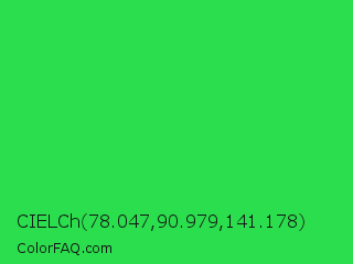 CIELCh 78.047,90.979,141.178 Color is a normal green color and the nearest color is Malachite #0bda51. Hex code #2bde4d and RGB value is rgb(43,222,77). In RGB color space, this color is composed of 17% red, 87% green, 30% blue, In CMYK color space, this color is composed of 81% cyan, 0% magenta, 65% yellow , 13% black , In HSL color space, this color has a hue angle of 131° , 73% saturation and 52% lightness.