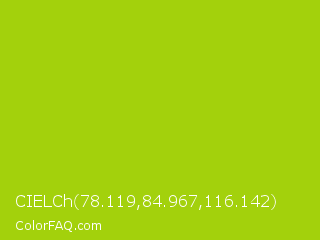 CIELCh 78.119,84.967,116.142 Color is a normal lime color and the nearest color is Bahia #a5cb0c. Hex code #a3d10c and RGB value is rgb(163,209,12). In RGB color space, this color is composed of 64% red, 82% green, 5% blue, In CMYK color space, this color is composed of 22% cyan, 0% magenta, 94% yellow , 18% black , In HSL color space, this color has a hue angle of 74° , 89% saturation and 43% lightness.