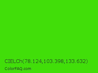 CIELCh 78.124,103.398,133.632 Color is a normal green color and the nearest color is Harlequin Green #46cb18. Hex code #42de0a and RGB value is rgb(66,222,10). In RGB color space, this color is composed of 26% red, 87% green, 4% blue, In CMYK color space, this color is composed of 70% cyan, 0% magenta, 95% yellow , 13% black , In HSL color space, this color has a hue angle of 104° , 91% saturation and 45% lightness.
