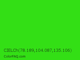 CIELCh 78.189,104.087,135.106 Color is a normal green color and the nearest color is Harlequin Green #46cb18. Hex code #33df15 and RGB value is rgb(51,223,21). In RGB color space, this color is composed of 20% red, 87% green, 8% blue, In CMYK color space, this color is composed of 77% cyan, 0% magenta, 91% yellow , 13% black , In HSL color space, this color has a hue angle of 111° , 83% saturation and 48% lightness.