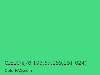CIELCh 78.193,67.259,151.024 Color is a normal green color and the nearest color is UFO Green #3cd070. Hex code #45db82 and RGB value is rgb(69,219,130). In RGB color space, this color is composed of 27% red, 86% green, 51% blue, In CMYK color space, this color is composed of 68% cyan, 0% magenta, 41% yellow , 14% black , In HSL color space, this color has a hue angle of 144° , 68% saturation and 56% lightness.