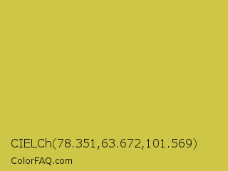 CIELCh 78.351,63.672,101.569 Color is a normal yellow color and the nearest color is Turmeric #cabb48. Hex code #cdc646 and RGB value is rgb(205,198,70). In RGB color space, this color is composed of 80% red, 78% green, 27% blue, In CMYK color space, this color is composed of 0% cyan, 3% magenta, 66% yellow , 20% black , In HSL color space, this color has a hue angle of 57° , 57% saturation and 54% lightness.