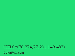 CIELCh 78.374,77.201,149.483 Color is a normal green color and the nearest color is UFO Green #3cd070. Hex code #21de75 and RGB value is rgb(33,222,117). In RGB color space, this color is composed of 13% red, 87% green, 46% blue, In CMYK color space, this color is composed of 85% cyan, 0% magenta, 47% yellow , 13% black , In HSL color space, this color has a hue angle of 147° , 74% saturation and 50% lightness.