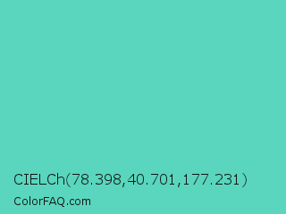 CIELCh 78.398,40.701,177.231 Color is a normal cyan color and the nearest color is Medium Turquoise #48d1cc. Hex code #59d6bd and RGB value is rgb(89,214,189). In RGB color space, this color is composed of 35% red, 84% green, 74% blue, In CMYK color space, this color is composed of 58% cyan, 0% magenta, 12% yellow , 16% black , In HSL color space, this color has a hue angle of 168° , 60% saturation and 59% lightness.