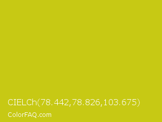 CIELCh 78.442,78.826,103.675 Color is a normal yellow color and the nearest color is Bird Flower #d4cd16. Hex code #c7c914 and RGB value is rgb(199,201,20). In RGB color space, this color is composed of 78% red, 79% green, 8% blue, In CMYK color space, this color is composed of 1% cyan, 0% magenta, 90% yellow , 21% black , In HSL color space, this color has a hue angle of 61° , 82% saturation and 43% lightness.