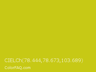 CIELCh 78.444,78.673,103.689 Color is a normal yellow color and the nearest color is Bird Flower #d4cd16. Hex code #c7c915 and RGB value is rgb(199,201,21). In RGB color space, this color is composed of 78% red, 79% green, 8% blue, In CMYK color space, this color is composed of 1% cyan, 0% magenta, 90% yellow , 21% black , In HSL color space, this color has a hue angle of 61° , 81% saturation and 44% lightness.