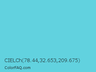 CIELCh 78.44,32.653,209.675 Color is a light cyan color and the nearest color is Viking #64ccdb. Hex code #61d2df and RGB value is rgb(97,210,223). In RGB color space, this color is composed of 38% red, 82% green, 87% blue, In CMYK color space, this color is composed of 57% cyan, 6% magenta, 0% yellow , 13% black , In HSL color space, this color has a hue angle of 186° , 66% saturation and 63% lightness.