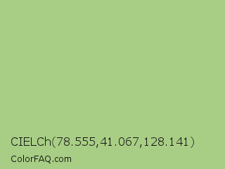 CIELCh 78.555,41.067,128.141 Color is a light green color and the nearest color is Feijoa #9fdd8c. Hex code #a8ce85 and RGB value is rgb(168,206,133). In RGB color space, this color is composed of 66% red, 81% green, 52% blue, In CMYK color space, this color is composed of 18% cyan, 0% magenta, 35% yellow , 19% black , In HSL color space, this color has a hue angle of 91° , 43% saturation and 66% lightness.