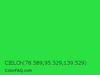 CIELCh 78.589,95.329,139.529 Color is a normal green color and the nearest color is Lime Green #32cd32. Hex code #2be042 and RGB value is rgb(43,224,66). In RGB color space, this color is composed of 17% red, 88% green, 26% blue, In CMYK color space, this color is composed of 81% cyan, 0% magenta, 71% yellow , 12% black , In HSL color space, this color has a hue angle of 128° , 74% saturation and 52% lightness.