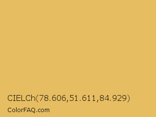 CIELCh 78.606,51.611,84.929 Color is a light orange color and the nearest color is Equator #e1bc64. Hex code #e7bd61 and RGB value is rgb(231,189,97). In RGB color space, this color is composed of 91% red, 74% green, 38% blue, In CMYK color space, this color is composed of 0% cyan, 18% magenta, 58% yellow , 9% black , In HSL color space, this color has a hue angle of 41° , 74% saturation and 64% lightness.