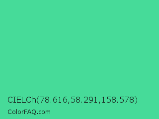 CIELCh 78.616,58.291,158.578 Color is a normal green color and the nearest color is Eucalyptus #44d7a8. Hex code #46db99 and RGB value is rgb(70,219,153). In RGB color space, this color is composed of 27% red, 86% green, 60% blue, In CMYK color space, this color is composed of 68% cyan, 0% magenta, 30% yellow , 14% black , In HSL color space, this color has a hue angle of 153° , 67% saturation and 57% lightness.