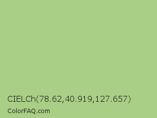 CIELCh 78.62,40.919,127.657 Color is a light green color and the nearest color is Feijoa #9fdd8c. Hex code #a9ce85 and RGB value is rgb(169,206,133). In RGB color space, this color is composed of 66% red, 81% green, 52% blue, In CMYK color space, this color is composed of 18% cyan, 0% magenta, 35% yellow , 19% black , In HSL color space, this color has a hue angle of 90° , 43% saturation and 66% lightness.