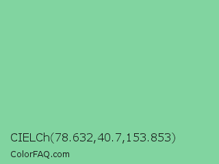 CIELCh 78.632,40.7,153.853 Color is a light green color and the nearest color is Eton Blue #96c8a2. Hex code #81d4a0 and RGB value is rgb(129,212,160). In RGB color space, this color is composed of 51% red, 83% green, 63% blue, In CMYK color space, this color is composed of 39% cyan, 0% magenta, 25% yellow , 17% black , In HSL color space, this color has a hue angle of 142° , 49% saturation and 67% lightness.