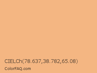CIELCh 78.637,38.782,65.08 Color is a light orange color and the nearest color is Tacao #edb381. Hex code #f4b682 and RGB value is rgb(244,182,130). In RGB color space, this color is composed of 96% red, 71% green, 51% blue, In CMYK color space, this color is composed of 0% cyan, 25% magenta, 47% yellow , 4% black , In HSL color space, this color has a hue angle of 27° , 84% saturation and 73% lightness.