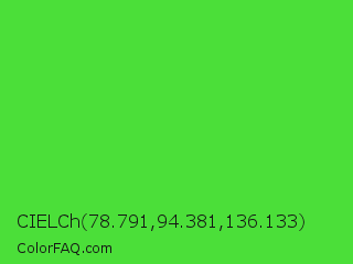 CIELCh 78.791,94.381,136.133 Color is a normal green color and the nearest color is Lime Green #32cd32. Hex code #4bdf39 and RGB value is rgb(75,223,57). In RGB color space, this color is composed of 29% red, 87% green, 22% blue, In CMYK color space, this color is composed of 66% cyan, 0% magenta, 74% yellow , 13% black , In HSL color space, this color has a hue angle of 113° , 72% saturation and 55% lightness.