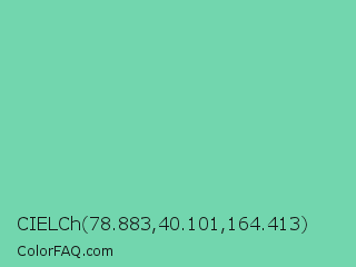 CIELCh 78.883,40.101,164.413 Color is a light green color and the nearest color is Medium Aquamarine #66ddaa. Hex code #72d6ae and RGB value is rgb(114,214,174). In RGB color space, this color is composed of 45% red, 84% green, 68% blue, In CMYK color space, this color is composed of 47% cyan, 0% magenta, 19% yellow , 16% black , In HSL color space, this color has a hue angle of 156° , 55% saturation and 64% lightness.