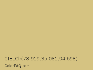 CIELCh 78.919,35.081,94.698 Color is a light yellow color and the nearest color is Straw #d4bf8d. Hex code #d5c382 and RGB value is rgb(213,195,130). In RGB color space, this color is composed of 84% red, 76% green, 51% blue, In CMYK color space, this color is composed of 0% cyan, 8% magenta, 39% yellow , 16% black , In HSL color space, this color has a hue angle of 47° , 50% saturation and 67% lightness.