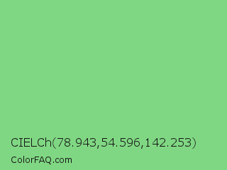 CIELCh 78.943,54.596,142.253 Color is a light green color and the nearest color is Pastel Green #77dd77. Hex code #80d783 and RGB value is rgb(128,215,131). In RGB color space, this color is composed of 50% red, 84% green, 51% blue, In CMYK color space, this color is composed of 40% cyan, 0% magenta, 39% yellow , 16% black , In HSL color space, this color has a hue angle of 122° , 52% saturation and 67% lightness.