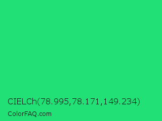 CIELCh 78.995,78.171,149.234 Color is a normal green color and the nearest color is UFO Green #3cd070. Hex code #21e075 and RGB value is rgb(33,224,117). In RGB color space, this color is composed of 13% red, 88% green, 46% blue, In CMYK color space, this color is composed of 85% cyan, 0% magenta, 48% yellow , 12% black , In HSL color space, this color has a hue angle of 146° , 75% saturation and 50% lightness.