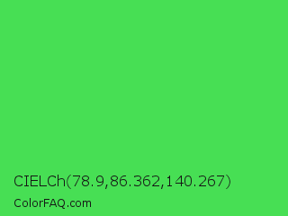 CIELCh 78.9,86.362,140.267 Color is a normal green color and the nearest color is UFO Green #3cd070. Hex code #47df54 and RGB value is rgb(71,223,84). In RGB color space, this color is composed of 28% red, 87% green, 33% blue, In CMYK color space, this color is composed of 68% cyan, 0% magenta, 62% yellow , 13% black , In HSL color space, this color has a hue angle of 125° , 70% saturation and 58% lightness.