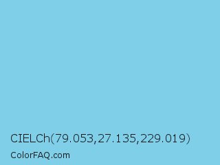 CIELCh 79.053,27.135,229.019 Color is a light blue color and the nearest color is Seagull #80ccea. Hex code #7fcfe9 and RGB value is rgb(127,207,233). In RGB color space, this color is composed of 50% red, 81% green, 91% blue, In CMYK color space, this color is composed of 45% cyan, 11% magenta, 0% yellow , 9% black , In HSL color space, this color has a hue angle of 195° , 71% saturation and 71% lightness.