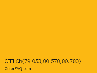 CIELCh 79.053,80.578,80.783 Color is a normal orange color and the nearest color is Sun #fbac13. Hex code #fcb812 and RGB value is rgb(252,184,18). In RGB color space, this color is composed of 99% red, 72% green, 7% blue, In CMYK color space, this color is composed of 0% cyan, 27% magenta, 93% yellow , 1% black , In HSL color space, this color has a hue angle of 43° , 98% saturation and 53% lightness.