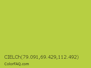 CIELCh 79.091,69.429,112.492 Color is a normal yellow color and the nearest color is Conifer #acdd4d. Hex code #b7cf42 and RGB value is rgb(183,207,66). In RGB color space, this color is composed of 72% red, 81% green, 26% blue, In CMYK color space, this color is composed of 12% cyan, 0% magenta, 68% yellow , 19% black , In HSL color space, this color has a hue angle of 70° , 59% saturation and 54% lightness.