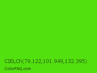 CIELCh 79.122,101.949,132.395 Color is a normal green color and the nearest color is Harlequin Green #46cb18. Hex code #52e00f and RGB value is rgb(82,224,15). In RGB color space, this color is composed of 32% red, 88% green, 6% blue, In CMYK color space, this color is composed of 63% cyan, 0% magenta, 93% yellow , 12% black , In HSL color space, this color has a hue angle of 101° , 87% saturation and 47% lightness.