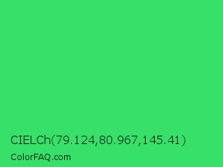CIELCh 79.124,80.967,145.41 Color is a normal green color and the nearest color is UFO Green #3cd070. Hex code #37e069 and RGB value is rgb(55,224,105). In RGB color space, this color is composed of 22% red, 88% green, 41% blue, In CMYK color space, this color is composed of 75% cyan, 0% magenta, 53% yellow , 12% black , In HSL color space, this color has a hue angle of 138° , 73% saturation and 55% lightness.