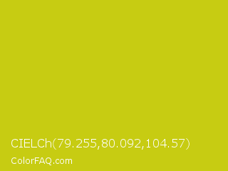 CIELCh 79.255,80.092,104.57 Color is a normal yellow color and the nearest color is Bird Flower #d4cd16. Hex code #c7cc12 and RGB value is rgb(199,204,18). In RGB color space, this color is composed of 78% red, 80% green, 7% blue, In CMYK color space, this color is composed of 2% cyan, 0% magenta, 91% yellow , 20% black , In HSL color space, this color has a hue angle of 62° , 84% saturation and 44% lightness.