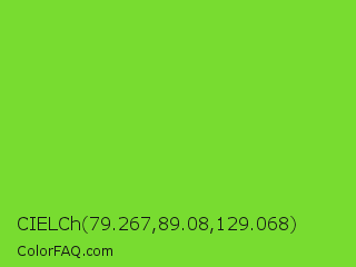 CIELCh 79.267,89.08,129.068 Color is a normal green color and the nearest color is Kiwi #8ee53f. Hex code #78dc30 and RGB value is rgb(120,220,48). In RGB color space, this color is composed of 47% red, 86% green, 19% blue, In CMYK color space, this color is composed of 45% cyan, 0% magenta, 78% yellow , 14% black , In HSL color space, this color has a hue angle of 95° , 71% saturation and 53% lightness.