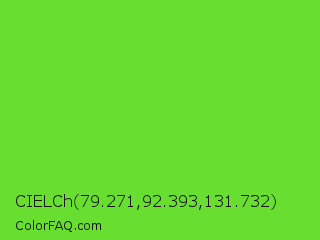 CIELCh 79.271,92.393,131.732 Color is a normal green color and the nearest color is Kiwi #8ee53f. Hex code #68de30 and RGB value is rgb(104,222,48). In RGB color space, this color is composed of 41% red, 87% green, 19% blue, In CMYK color space, this color is composed of 53% cyan, 0% magenta, 78% yellow , 13% black , In HSL color space, this color has a hue angle of 101° , 73% saturation and 53% lightness.