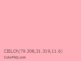 CIELCh 79.308,31.319,11.6 Color is a very light red color and the nearest color is Sundown #ffb1b3. Hex code #ffafba and RGB value is rgb(255,175,186). In RGB color space, this color is composed of 100% red, 69% green, 73% blue, In CMYK color space, this color is composed of 0% cyan, 31% magenta, 27% yellow , 0% black , In HSL color space, this color has a hue angle of 352° , 100% saturation and 84% lightness.
