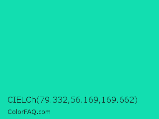 CIELCh 79.332,56.169,169.662 Color is a normal cyan color and the nearest color is Amazonite #00c4b0. Hex code #12deb0 and RGB value is rgb(18,222,176). In RGB color space, this color is composed of 7% red, 87% green, 69% blue, In CMYK color space, this color is composed of 92% cyan, 0% magenta, 21% yellow , 13% black , In HSL color space, this color has a hue angle of 166° , 85% saturation and 47% lightness.