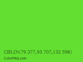 CIELCh 79.377,93.707,132.598 Color is a normal green color and the nearest color is Harlequin Green #46cb18. Hex code #62df30 and RGB value is rgb(98,223,48). In RGB color space, this color is composed of 38% red, 87% green, 19% blue, In CMYK color space, this color is composed of 56% cyan, 0% magenta, 78% yellow , 13% black , In HSL color space, this color has a hue angle of 103° , 73% saturation and 53% lightness.