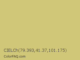 CIELCh 79.393,41.37,101.175 Color is a light yellow color and the nearest color is Chenin #dfcd6f. Hex code #d0c778 and RGB value is rgb(208,199,120). In RGB color space, this color is composed of 82% red, 78% green, 47% blue, In CMYK color space, this color is composed of 0% cyan, 4% magenta, 42% yellow , 18% black , In HSL color space, this color has a hue angle of 54° , 48% saturation and 64% lightness.