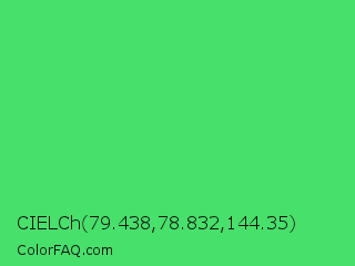 CIELCh 79.438,78.832,144.35 Color is a normal green color and the nearest color is UFO Green #3cd070. Hex code #47e06a and RGB value is rgb(71,224,106). In RGB color space, this color is composed of 28% red, 88% green, 42% blue, In CMYK color space, this color is composed of 68% cyan, 0% magenta, 53% yellow , 12% black , In HSL color space, this color has a hue angle of 134° , 71% saturation and 58% lightness.
