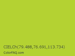 CIELCh 79.488,76.691,113.734 Color is a normal lime color and the nearest color is Android Green #a4c639. Hex code #b2d231 and RGB value is rgb(178,210,49). In RGB color space, this color is composed of 70% red, 82% green, 19% blue, In CMYK color space, this color is composed of 15% cyan, 0% magenta, 77% yellow , 18% black , In HSL color space, this color has a hue angle of 72° , 64% saturation and 51% lightness.
